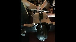 Tetas atadas y encerrado en un sybian